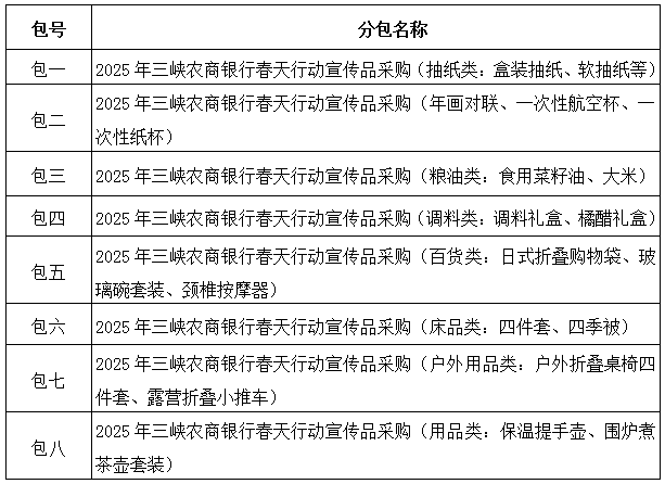 | 2025年三峡农商银行春天行动宣传品采购竞争性磋商公告 |