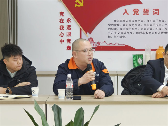 最后,支部书记、公司董事长盛斌做总结发言。他说,习近平总书记在民营企业座谈会上的重要讲话,充分肯定民营经济发展取得的重大成就和为国家经济社会发展作出的重要贡献,对当前和今后一个时期促进民营经济健康发展、高质量发展作出全面部署,必将为开创新时代民营经济发展新局面产生磅礴的动力。盛斌书记希望公司全体党员、入党积极分子作为公司发展的中坚力量,在时代巨变的浪潮中坚守初心、直面挑战、勇毅前行。一是要显底色,在积极宣传新时代党的方针政策上走在前,做好声音的宣传器;二是要践本色,在以身作则克难奋进上走在前,做勇前行的奋斗者;三是要添靓色,在以新质生产力赋能强效上走在前,做攀高峰的探路人。