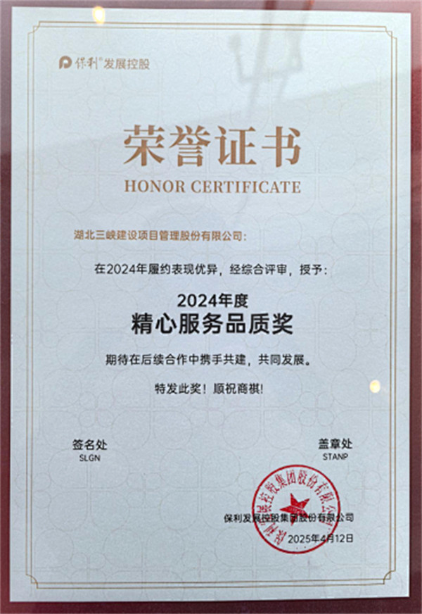 ——完美体育网址荣获保利发展控股集团“2024年度精心服务品质奖” |